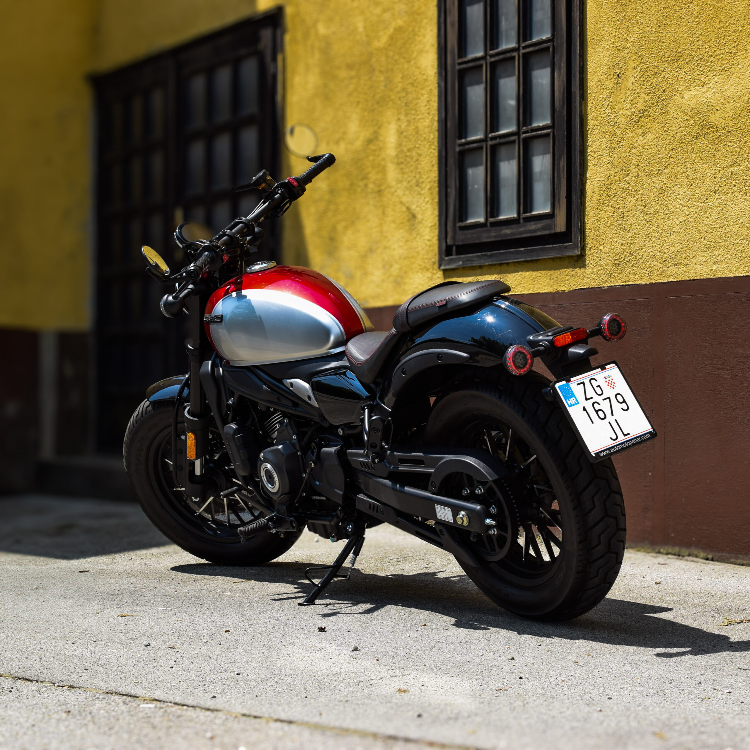 Klasični cruiser s modernim dodirima, 450CL-C ima motor od 449 ccm s 40 KS i 42 Nm okretnog momenta. Dizajniran za opuštene vožnje, ovaj motocikl kombinira retro stil s naprednim tehnologijama kao što su TFT zaslon i LED svjetla. Uz težinu od 181 kg i nisku visinu sjedala od 690 mm, lako je upravljiv i pogodan za vozače svih razina iskustva. Robusni ovjes i disk kočnice pružaju sigurnost i stabilnost na cesti.